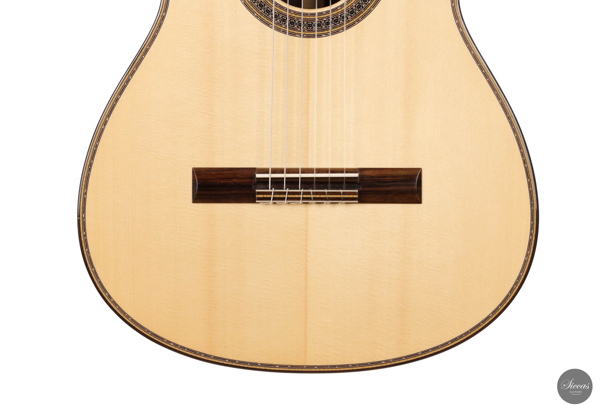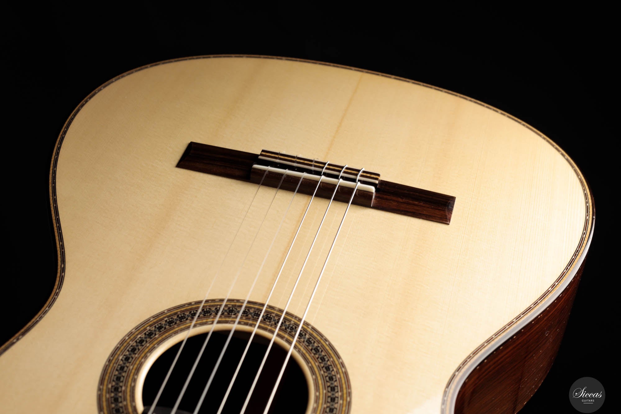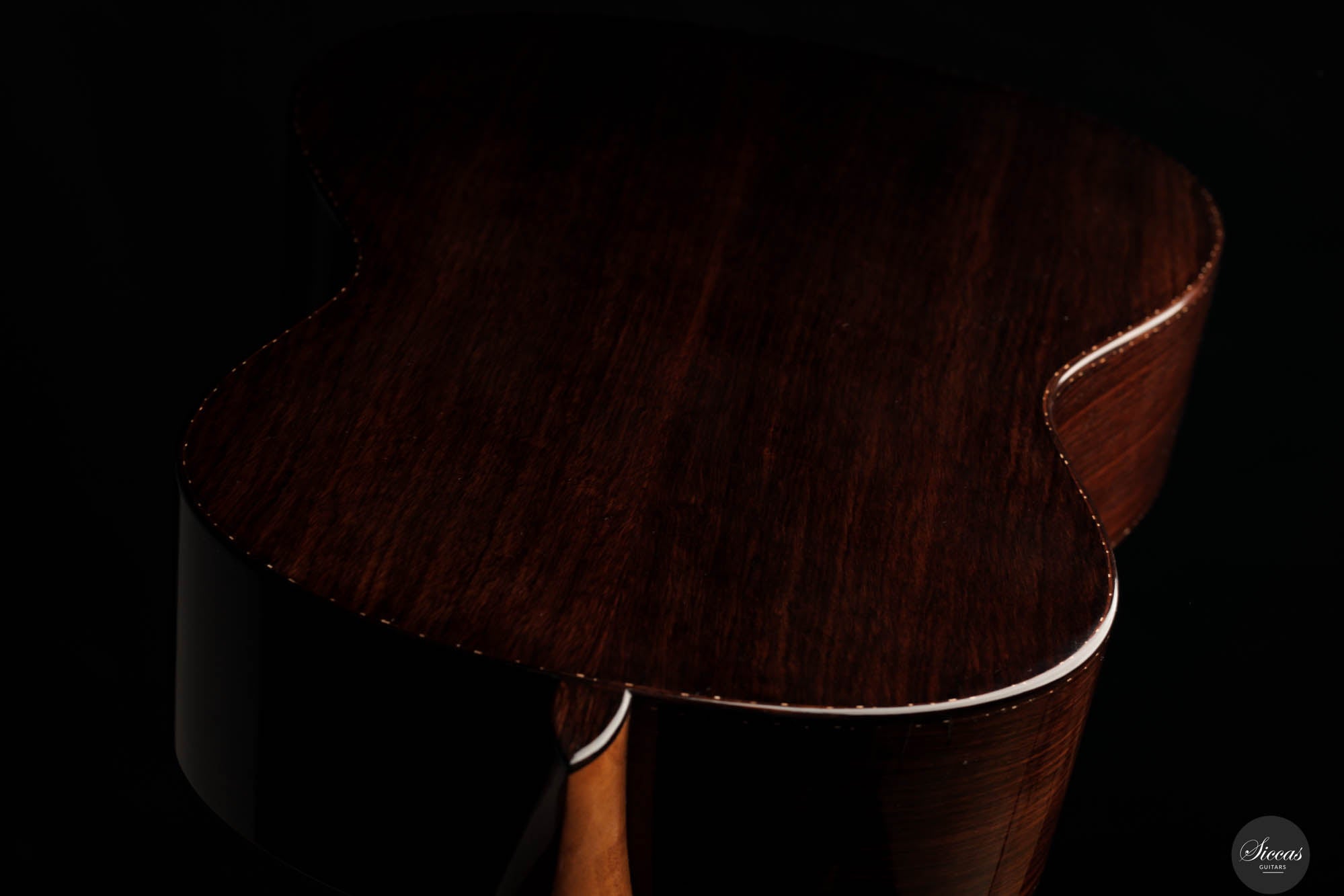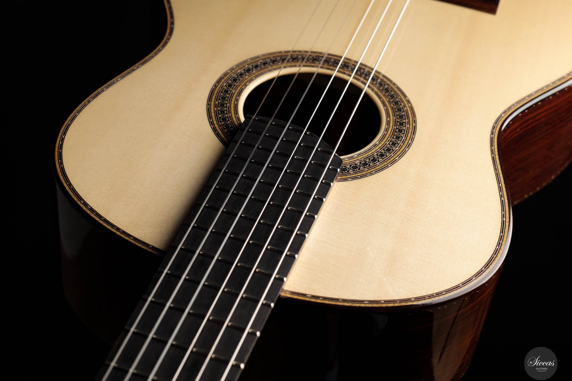 Guitar No. 13, the sister instrument to No. 14, shares a nearly identical aesthetic with its counterpart, beautifully crafted to mirror each other in every visible aspect. The true distinction lies beneath the surface, where luthier Paul has varied the thickness of the top, an experimental touch designed to subtly influence the acoustic properties of each guitar. This meticulous attention to detail is part of a broader commitment to achieving the highest level of craftsmanship, with every element finely tuned to perfection. For those interested in the specifics of these variations, an interview with Paul provides a deeper insight into his innovative approach, highlighting the subtle yet impactful differences between these two exceptional instruments.Both guitars stand out as masterpieces of lutherie, boasting clean and precise acoustic qualities that make them suitable for a wide range of musical styles. The clarity of sound produced by these instruments is particularly remarkable, facilitating the performance of complex polyphonic works with ease. This clarity ensures that every note is articulated distinctly, supporting musicians in their expression of intricate musical passages. Whether used in a solo performance or within an ensemble, guitars No. 13 and No. 14 offer musicians the ability to convey their musical vision with precision, making them not just tools, but true partners in the artistic process.